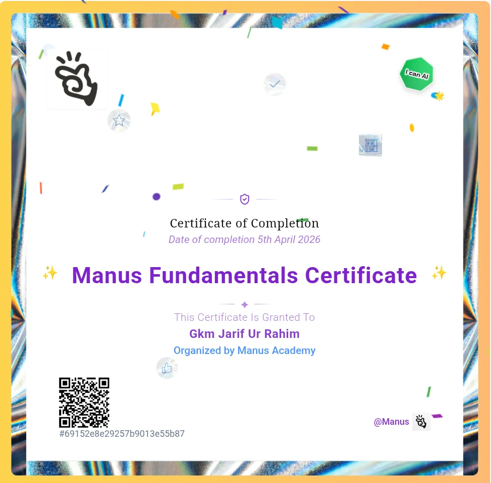 On April 6, 2026, I completed the Manus Advanced Certificate from Manus Academy. This is not a typical credential announcement. This is a reflection on what this certification actually represents — and why it matters for anyone serious about building a future in AI, automation, and intelligent systems.
